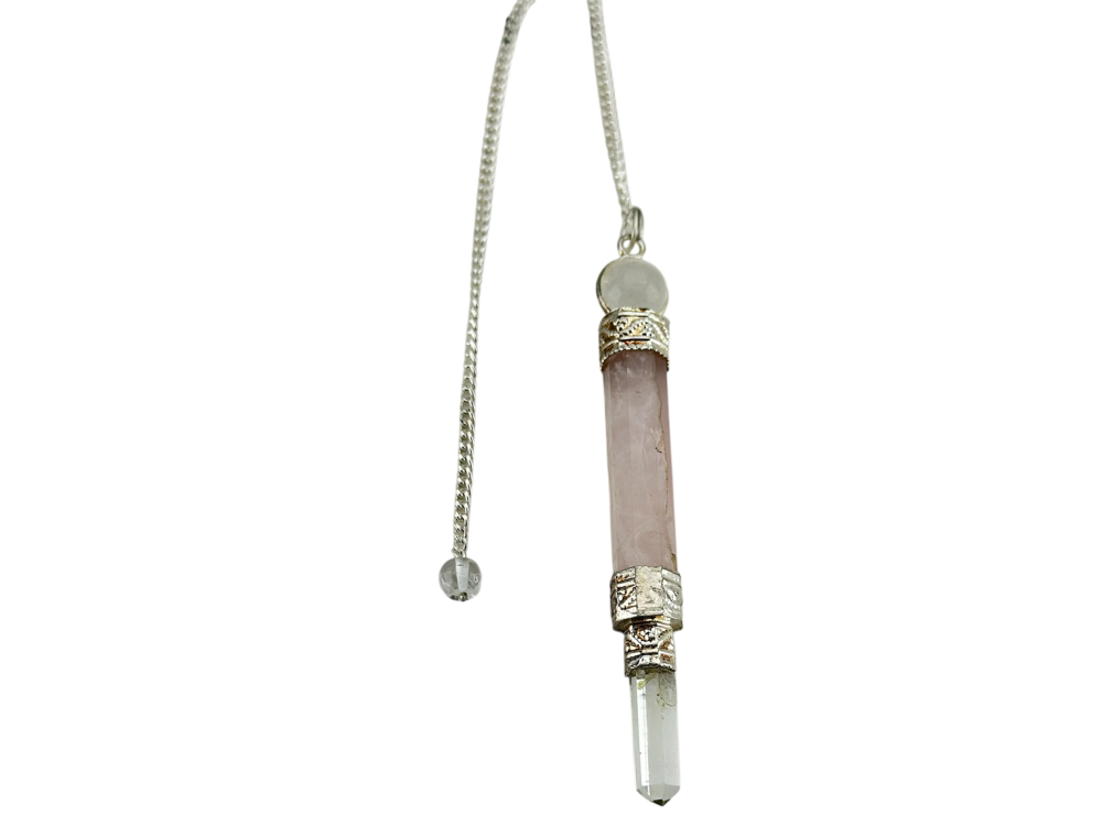 Pêndulo de Quartzo Rosa e Cristal