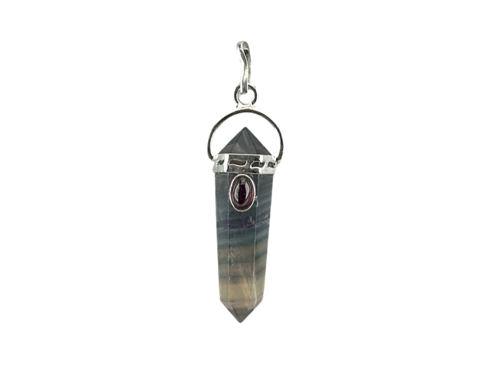 Pingente de Ponta Biterminado de Fluorite com Cabochão de Pedra da Lua