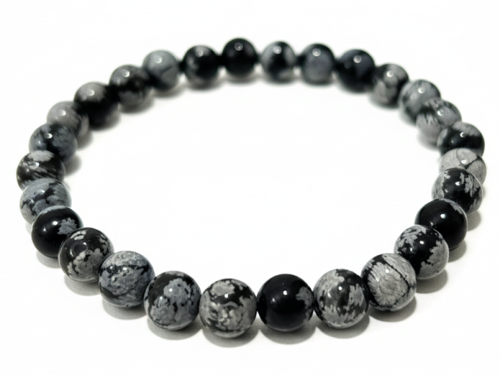 Pulseira Obsidiana Flocos de Neve 8mm